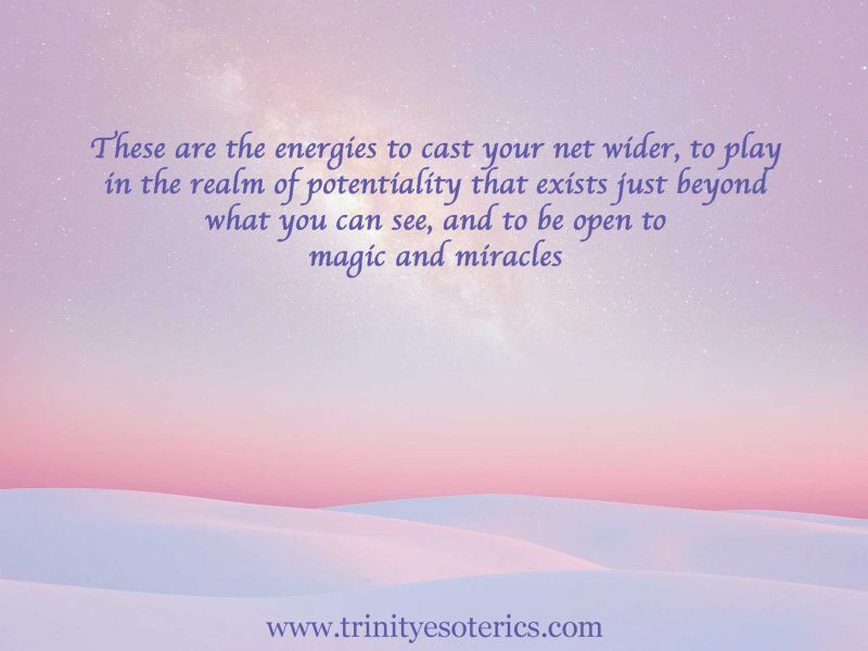 These are the energies to cast your net wider, to play in realm of potentiality that exists just beyond what you can see, and to be open to magic and miracles, for it is from there you will create and express yourselves in your greatest expression of self and continue to expand from there. The only limits are the ones you put upon yourselves, Dear Ones. ~Archangel Gabriel through Shelley Young