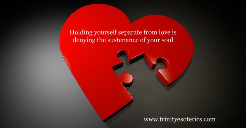 Further, because you understand you are a being of love, you do not see it as a limited resource but rather as an abundant flow with more than enough for everyone. Because you also understand the importance of giving love to yourself, you are sated with it already. You draw to you more of what you hold. You are no longer dependant upon the wild card of what others may or may not do for your happiness. You realize that holding yourself separate is denying yourself the sustenance of your soul.