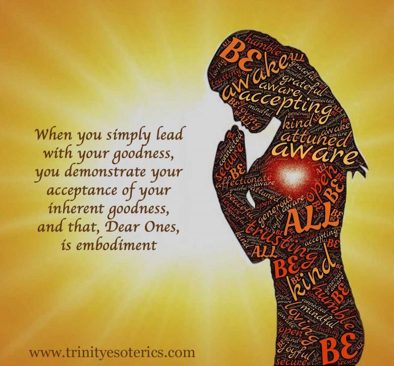 If you are always trying to prove your goodness you are implying that your goodness is in doubt. When you simply lead with your goodness, you demonstrate your acceptance of your inherent goodness, and that, Dear Ones, is embodiment. ~Archangel Gabriel through Shelley Young